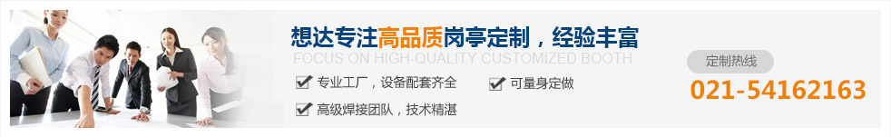 上海想達建筑裝飾工程有限公司是一家專業專注崗亭事業的現代化企業,公司集設計,生成,加工,銷售和售后服務為一體。主要經營的崗亭類型有:保安崗亭、治安崗亭、上海崗亭、售貨崗亭、收費崗亭、不銹鋼崗亭等各種崗亭的設計與銷售。 公司秉承:專業技能,專注姿態,做精產品,做強品牌的經營理念。在全國的崗亭廠家中也一直走進市場的前面。多年來公司產品質量被業內外認可和好評!